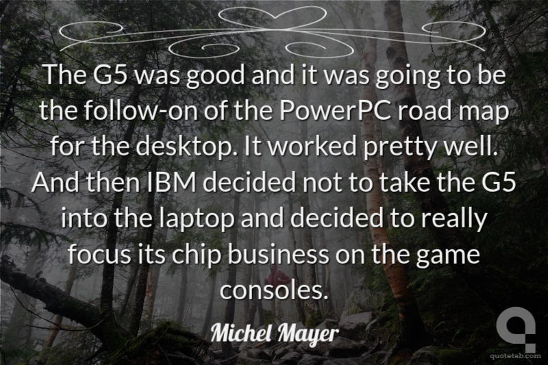 The G5 was good and it was going to be the follow-on of the PowerPC road map for the desktop. It worked pretty well. And then IBM decided not to take the G5 into the laptop and decided to really focus its chip business on the game consoles.