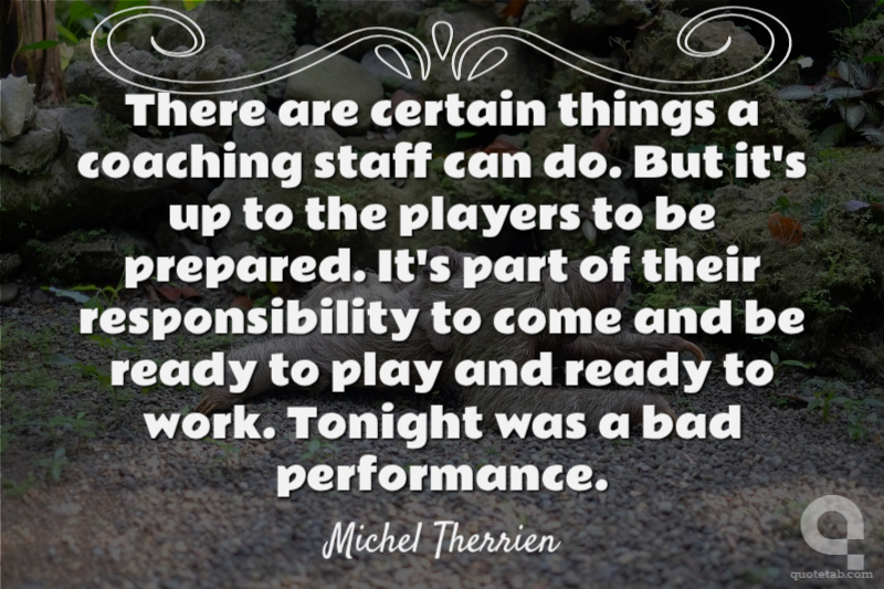 There are certain things a coaching staff can do. But it's up to the players to be prepared. It's part of their responsibility to come and be ready to play and ready to work. Tonight was a bad performance.