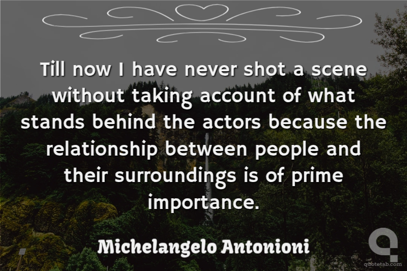 Till now I have never shot a scene without taking account of what stands behind the actors because the relationship between people and their surroundings is of prime importance.