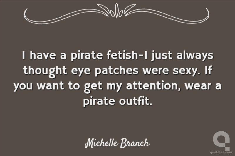 I have a pirate fetish-I just always thought eye patches were sexy. If you want to get my attention, wear a pirate outfit.