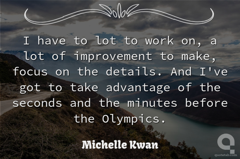 I have to lot to work on, a lot of improvement to make, focus on the details. And I've got to take advantage of the seconds and the minutes before the Olympics.