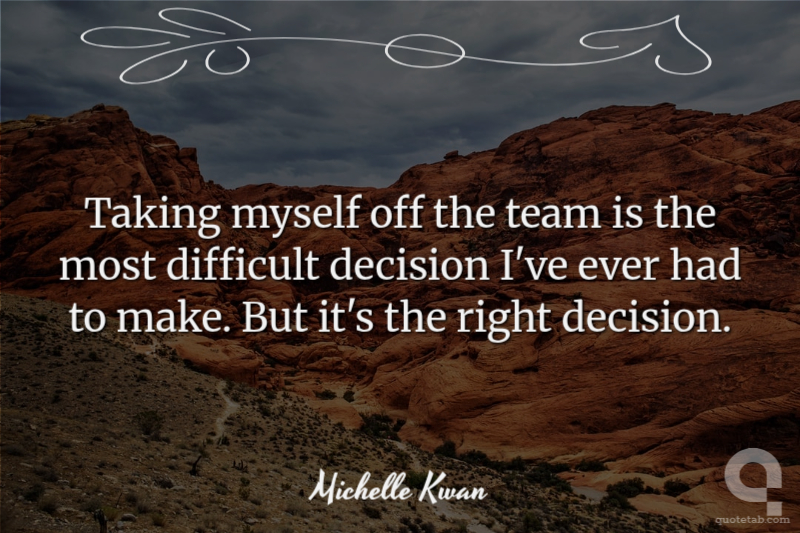 Taking myself off the team is the most difficult decision I've ever had to make. But it's the right decision.