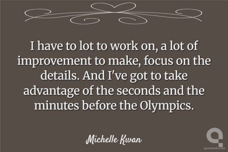 I have to lot to work on, a lot of improvement to make, focus on the details. And I've got to take advantage of the seconds and the minutes before the Olympics.