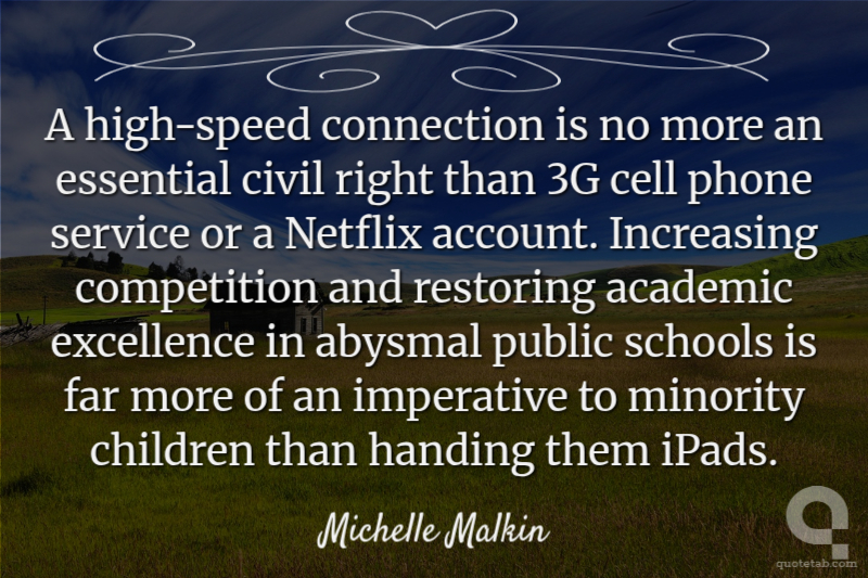 A high-speed connection is no more an essential civil right than 3G cell phone service or a Netflix account. Increasing competition and restoring academic excellence in abysmal public schools is far more of an imperative to minority children than handing them iPads.