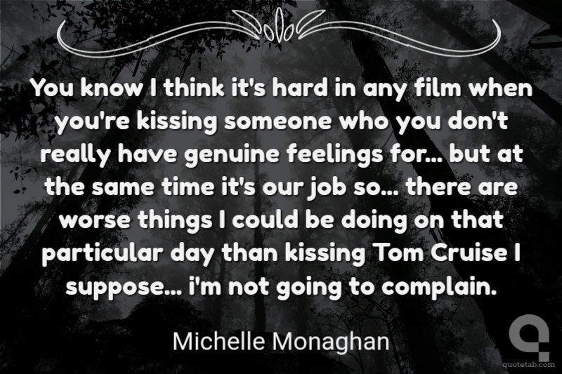 You know I think it's hard in any film when you're kissing someone who you don't really have genuine feelings for... but at the same time it's our job so... there are worse things I could be doing on that particular day than kissing Tom Cruise I suppose... i'm not going to complain.