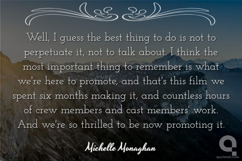 Well, I guess the best thing to do is not to perpetuate it, not to talk about. I think the most important thing to remember is what we're here to promote, and that's this film we spent six months making it, and countless hours of crew members and cast members' work. And we're so thrilled to be now promoting it.