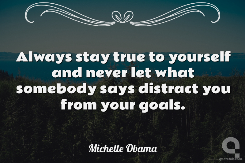 Always stay true to yourself and never let what somebody says distract you from your goals.