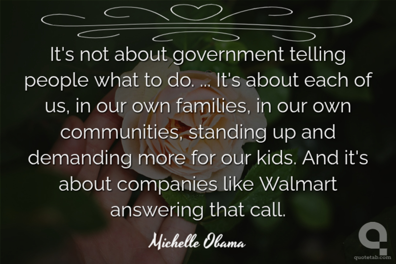 It's not about government telling people what to do. ... It's about each of us, in our own families, in our own communities, standing up and demanding more for our kids. And it's about companies like Walmart answering that call.