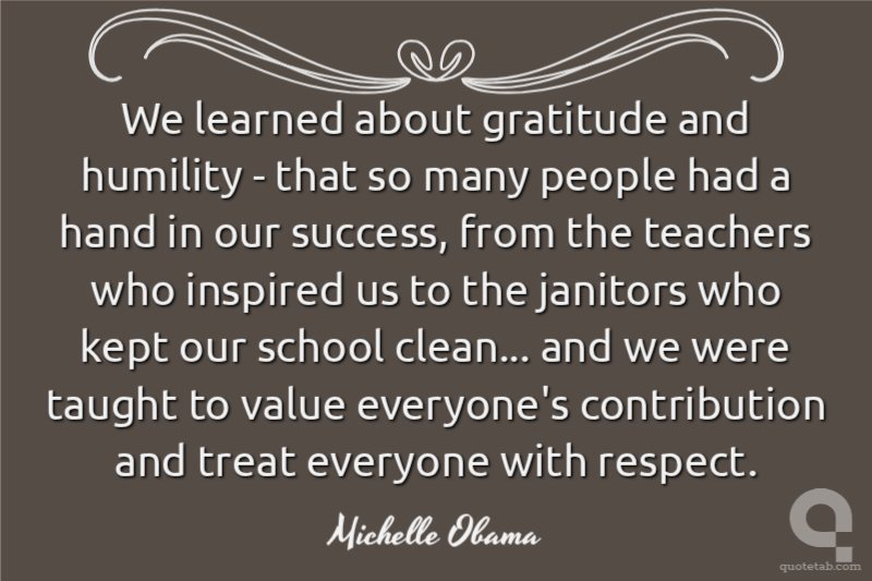 We learned about gratitude and humility - that so many people had a hand in our success, from the teachers who inspired us to the janitors who kept our school clean... and we were taught to value everyone's contribution and treat everyone with respect.