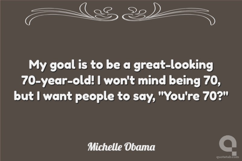 My goal is to be a great-looking 70-year-old! I won't mind being 70, but I want people to say, "You're 70?"