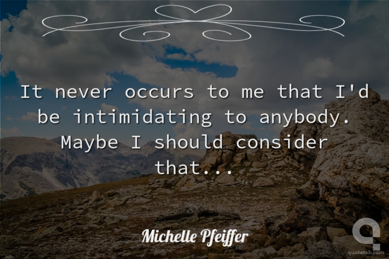 It never occurs to me that I'd be intimidating to anybody. Maybe I should consider that...