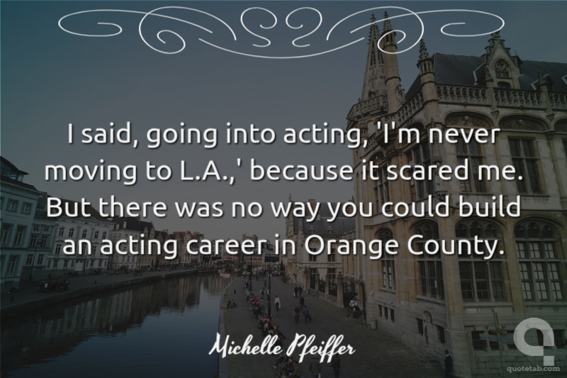 I said, going into acting, 'I'm never moving to L.A.,' because it scared me. But there was no way you could build an acting career in Orange County.