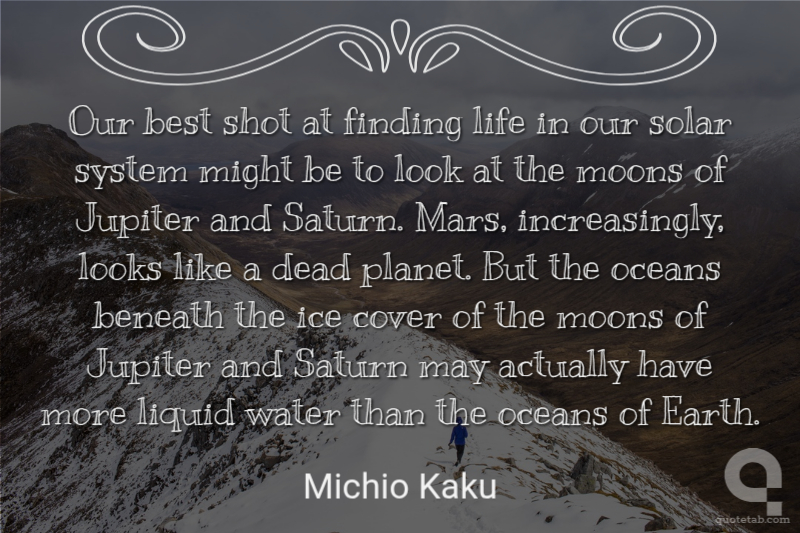 Our best shot at finding life in our solar system might be to look at the moons of Jupiter and Saturn. Mars, increasingly, looks like a dead planet. But the oceans beneath the ice cover of the moons of Jupiter and Saturn may actually have more liquid water than the oceans of Earth.