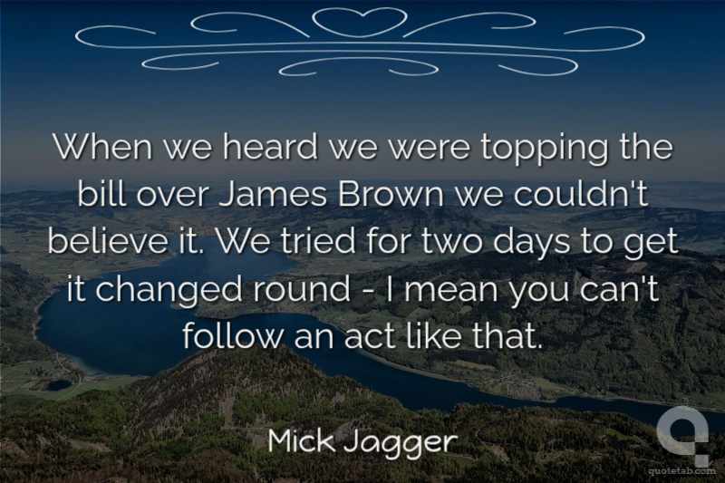 When we heard we were topping the bill over James Brown we couldn't believe it. We tried for two days to get it changed round - I mean you can't follow an act like that.