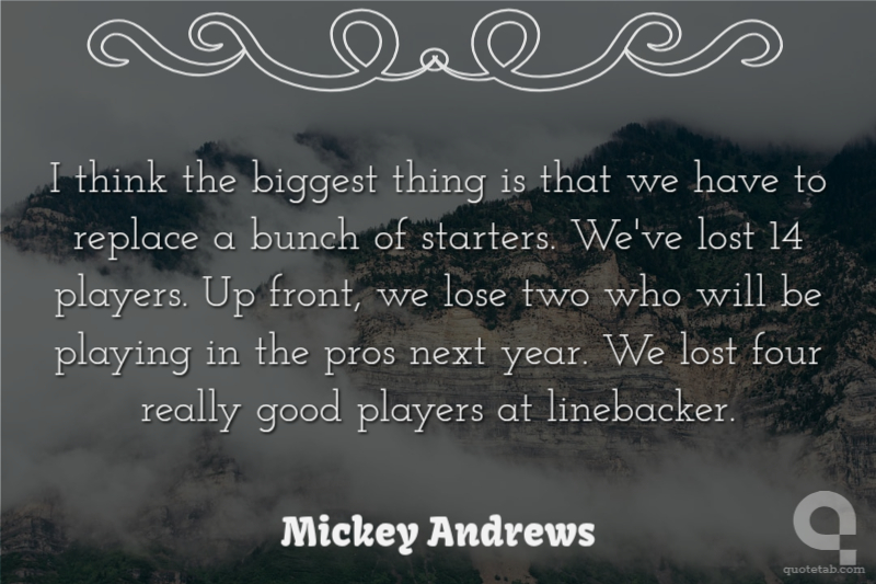 I think the biggest thing is that we have to replace a bunch of starters. We've lost 14 players. Up front, we lose two who will be playing in the pros next year. We lost four really good players at linebacker.