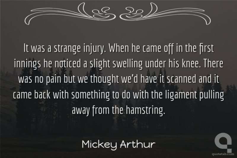 It was a strange injury. When he came off in the first innings he noticed a slight swelling under his knee. There was no pain but we thought we'd have it scanned and it came back with something to do with the ligament pulling away from the hamstring.