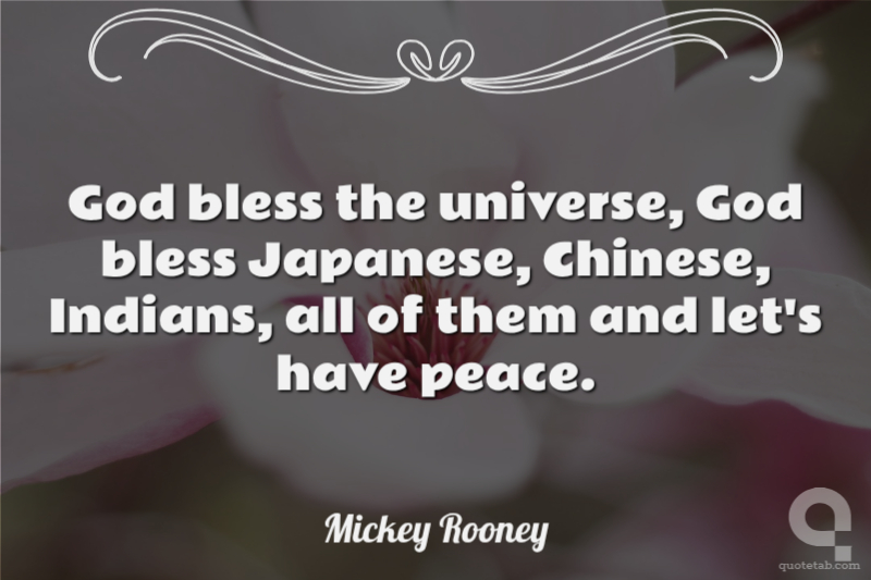 God bless the universe, God bless Japanese, Chinese, Indians, all of them and let's have peace.