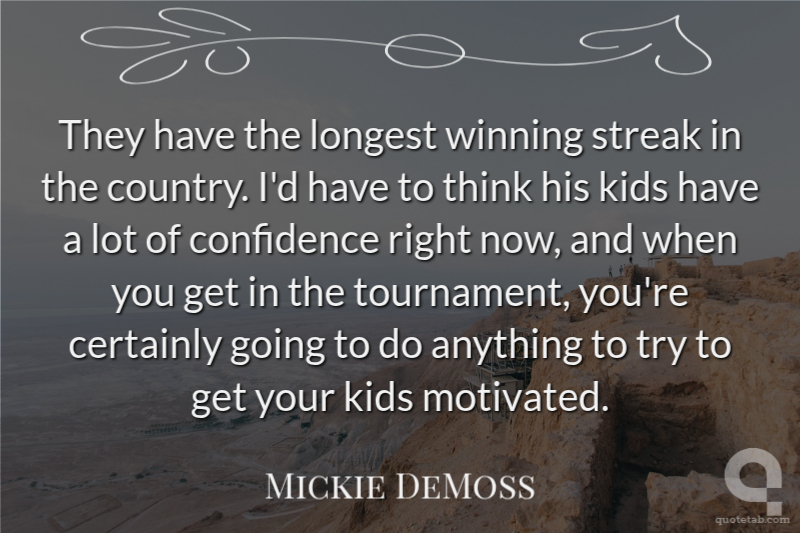 They have the longest winning streak in the country. I'd have to think his kids have a lot of confidence right now, and when you get in the tournament, you're certainly going to do anything to try to get your kids motivated.