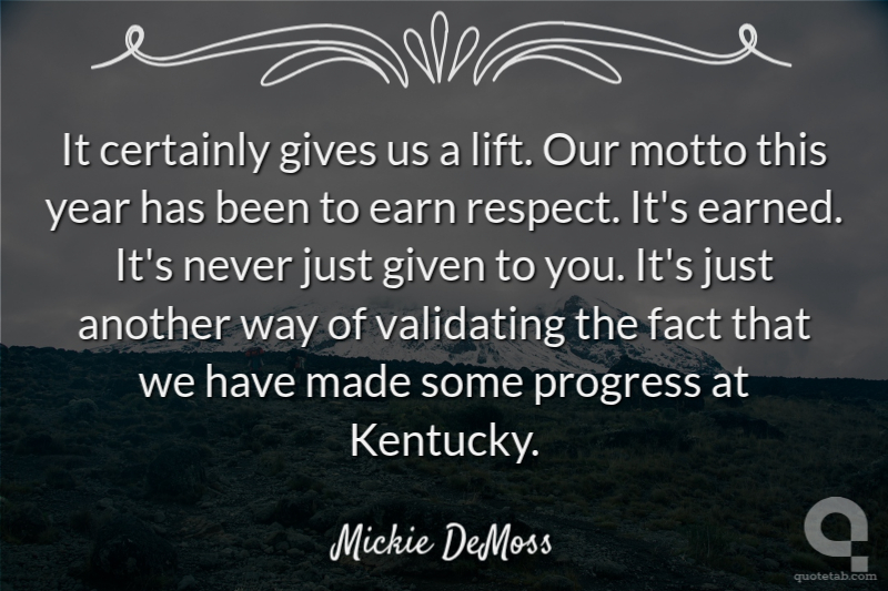 It certainly gives us a lift. Our motto this year has been to earn respect. It's earned. It's never just given to you. It's just another way of validating the fact that we have made some progress at Kentucky.