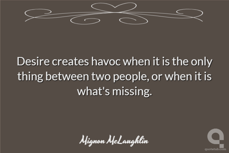 Desire creates havoc when it is the only thing between two people, or when it is what's missing.