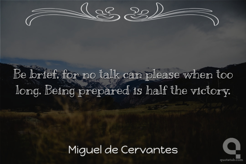 Be brief, for no talk can please when too long. Being prepared is half the victory.