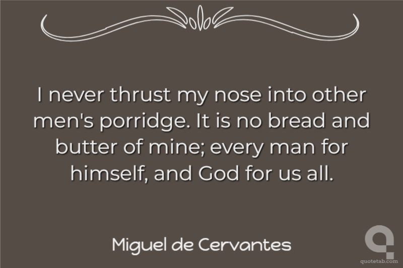 I never thrust my nose into other men's porridge. It is no bread and butter of mine; every man for himself, and God for us all.