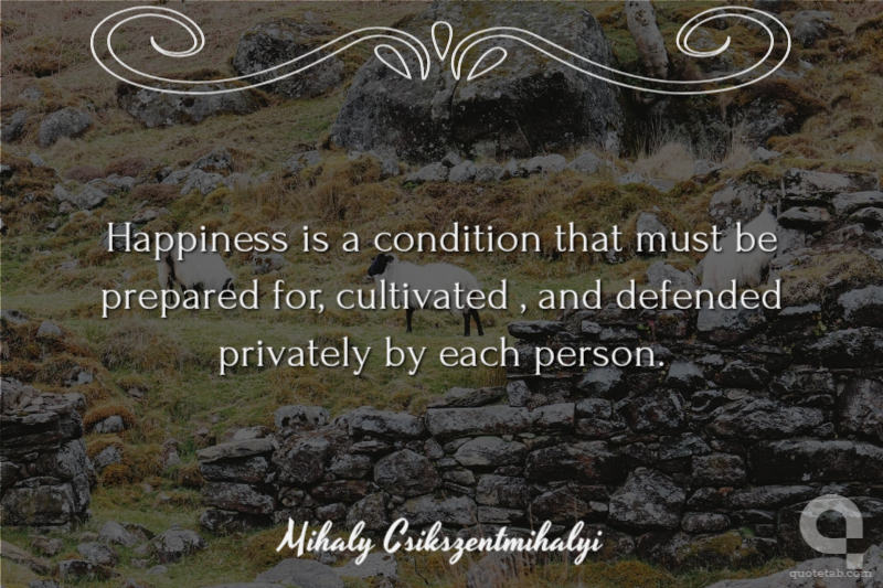 Happiness is a condition that must be prepared for, cultivated , and defended privately by each person.