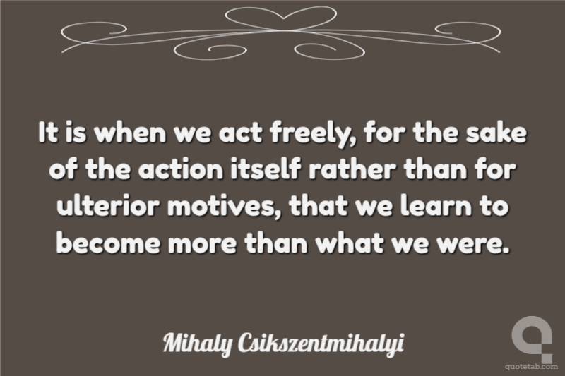 It is when we act freely, for the sake of the action itself rather than for ulterior motives, that we learn to become more than what we were.