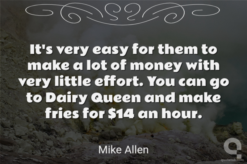 It's very easy for them to make a lot of money with very little effort. You can go to Dairy Queen and make fries for $14 an hour.