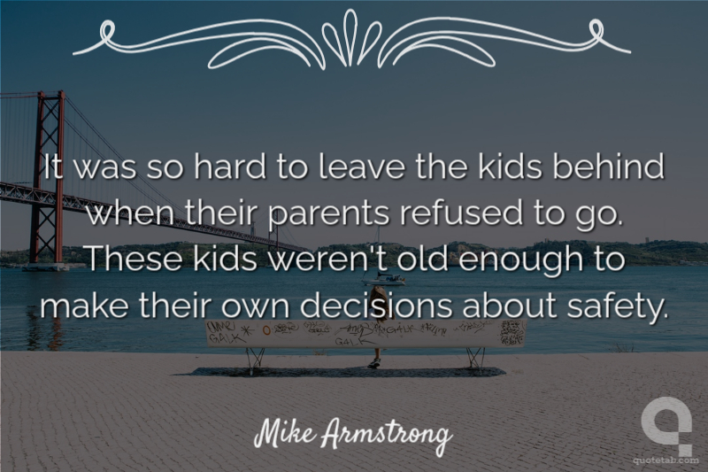 It was so hard to leave the kids behind when their parents refused to go. These kids weren't old enough to make their own decisions about safety.