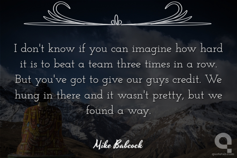 I don't know if you can imagine how hard it is to beat a team three times in a row. But you've got to give our guys credit. We hung in there and it wasn't pretty, but we found a way.