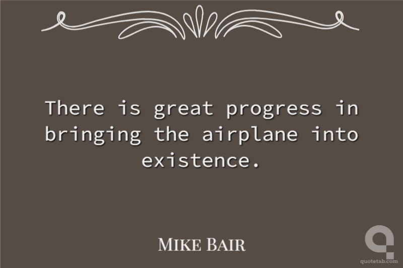 There is great progress in bringing the airplane into existence.