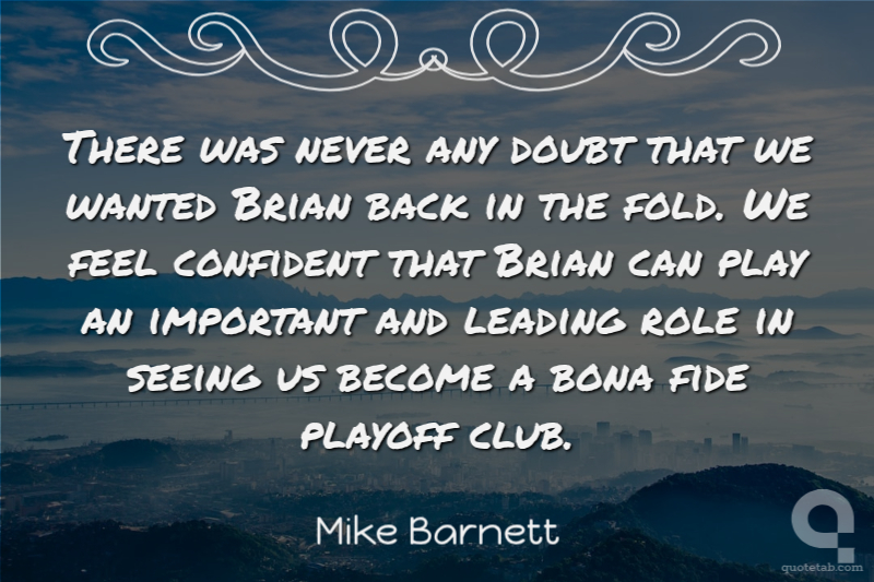 There was never any doubt that we wanted Brian back in the fold. We feel confident that Brian can play an important and leading role in seeing us become a bona fide playoff club.
