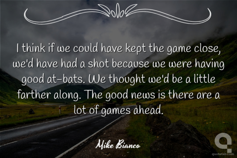 I think if we could have kept the game close, we'd have had a shot because we were having good at-bats. We thought we'd be a little farther along. The good news is there are a lot of games ahead.