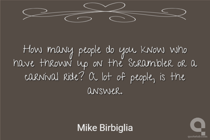 How many people do you know who have thrown up on the Scrambler or a carnival ride? A lot of people, is the answer.