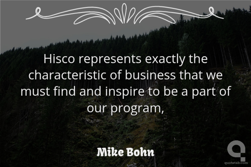 Hisco represents exactly the characteristic of business that we must find and inspire to be a part of our program,
