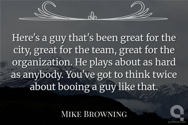Here's a guy that's been great for the city, great for the team, great for the organization. He plays about as hard as anybody. You've got to think twice about booing a guy like that.