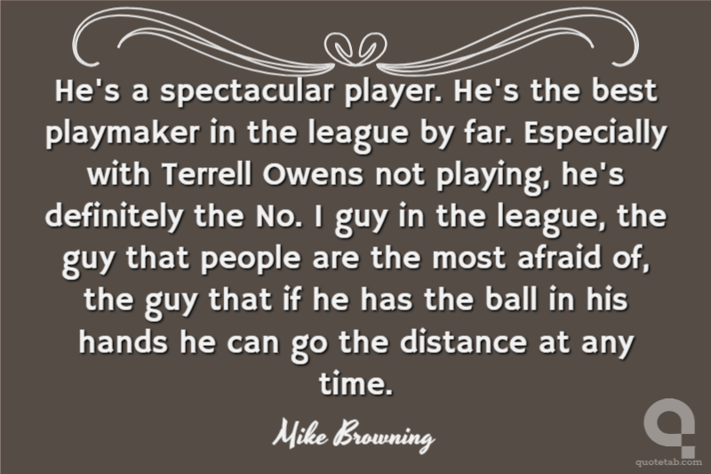 He's a spectacular player. He's the best playmaker in the league by far. Especially with Terrell Owens not playing, he's definitely the No. 1 guy in the league, the guy that people are the most afraid of, the guy that if he has the ball in his hands he can go the distance at any time.