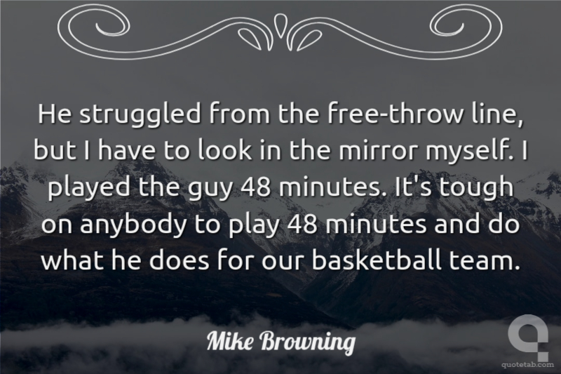 He struggled from the free-throw line, but I have to look in the mirror myself. I played the guy 48 minutes. It's tough on anybody to play 48 minutes and do what he does for our basketball team.