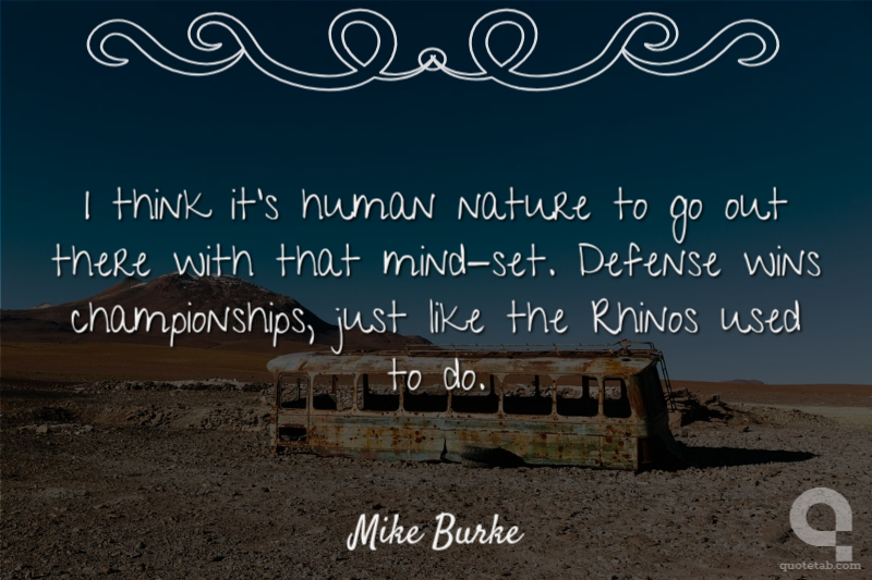 I think it's human nature to go out there with that mind-set. Defense wins championships, just like the Rhinos used to do.