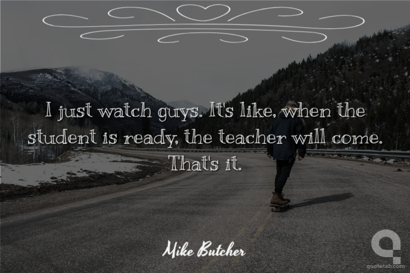I just watch guys. It's like, when the student is ready, the teacher will come. That's it.