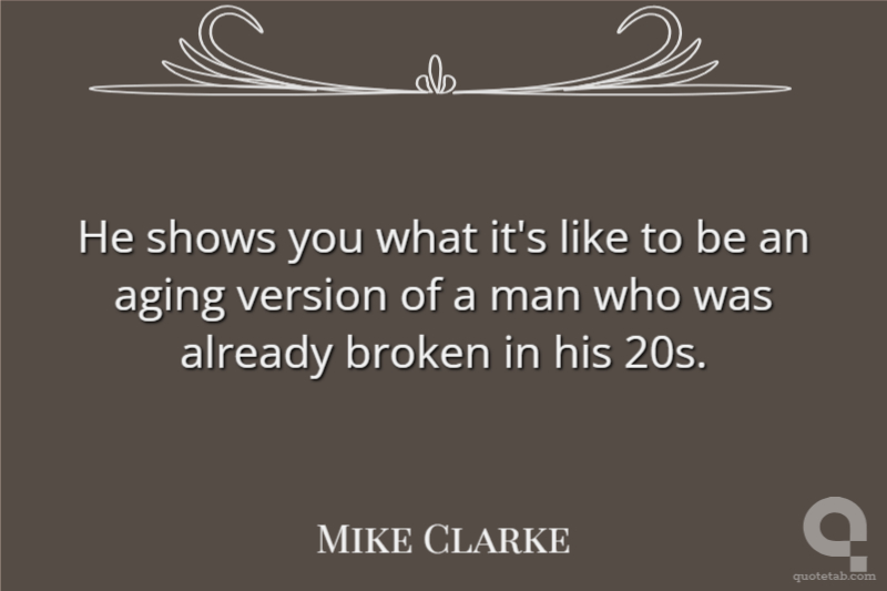 He shows you what it's like to be an aging version of a man who was already broken in his 20s.