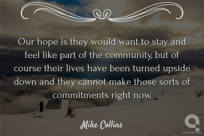 Our hope is they would want to stay and feel like part of the community, but of course their lives have been turned upside down and they cannot make those sorts of commitments right now.