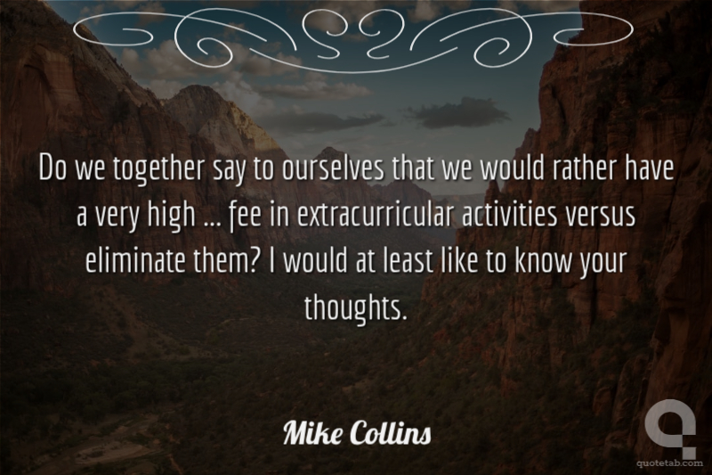 Do we together say to ourselves that we would rather have a very high ... fee in extracurricular activities versus eliminate them? I would at least like to know your thoughts.
