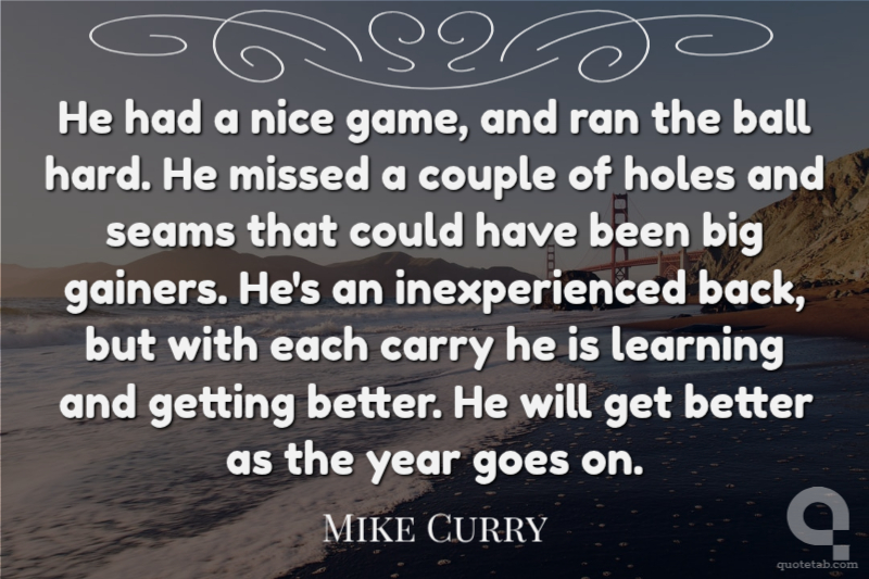 He had a nice game, and ran the ball hard. He missed a couple of holes and seams that could have been big gainers. He's an inexperienced back, but with each carry he is learning and getting better. He will get better as the year goes on.