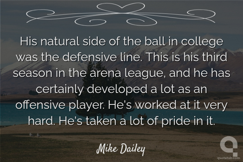 His natural side of the ball in college was the defensive line. This is his third season in the arena league, and he has certainly developed a lot as an offensive player. He's worked at it very hard. He's taken a lot of pride in it.