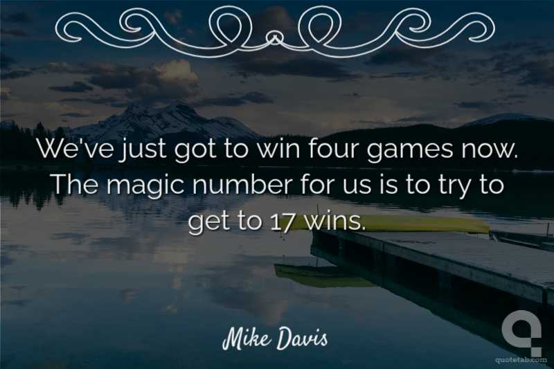 We've just got to win four games now. The magic number for us is to try to get to 17 wins.