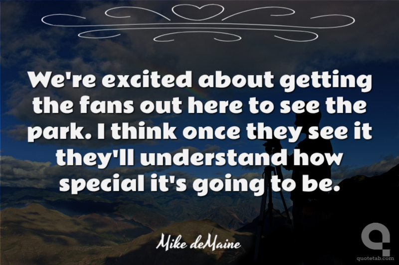 We're excited about getting the fans out here to see the park. I think once they see it they'll understand how special it's going to be.