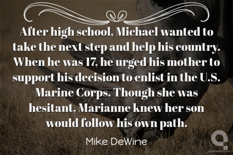 After high school, Michael wanted to take the next step and help his country. When he was 17, he urged his mother to support his decision to enlist in the U.S. Marine Corps. Though she was hesitant, Marianne knew her son would follow his own path.