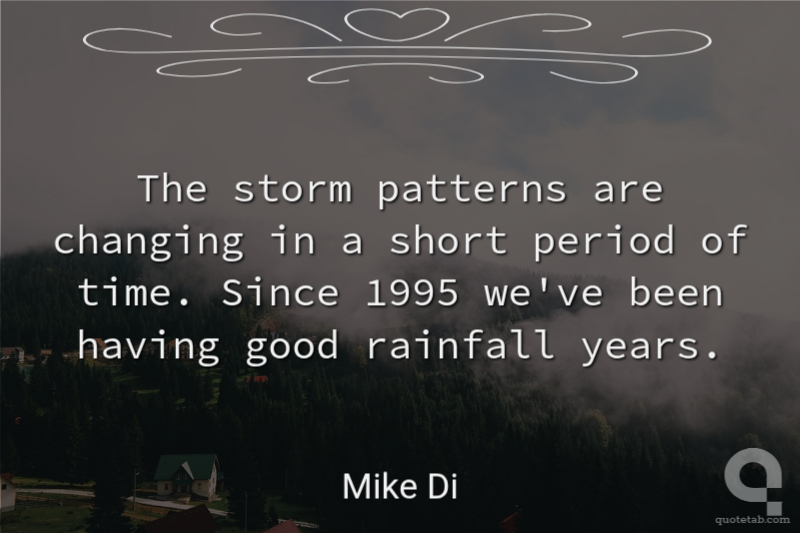 The storm patterns are changing in a short period of time. Since 1995 we've been having good rainfall years.
